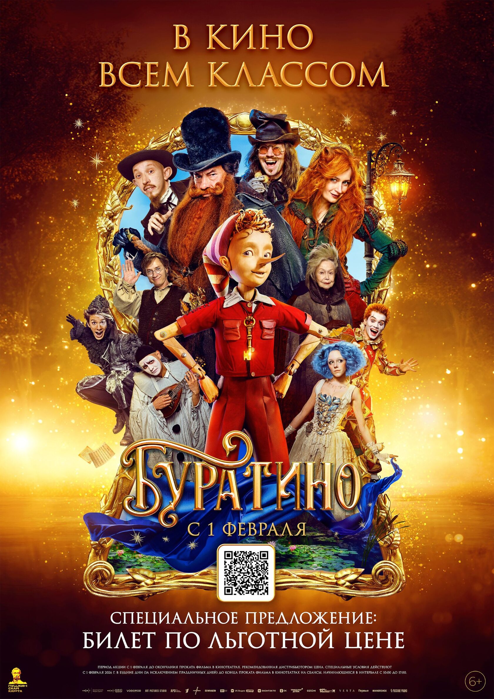Приглашаем вас и ваших учеников в кино на сеанс семейного полнометражного фильма «БУРАТИНО» (возрастной рейтинг 6+) по специальной льготной цене*.